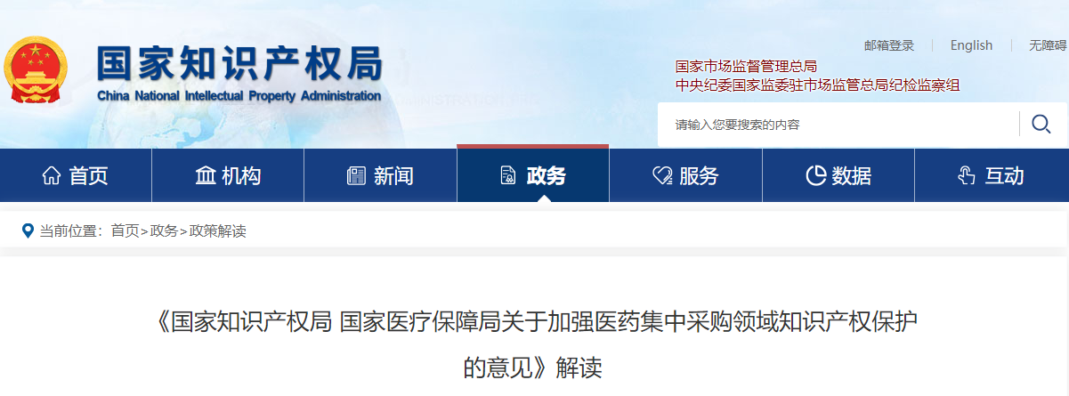 近日,國家知識產(chǎn)權(quán)局、國家醫(yī)療保障局聯(lián)合印發(fā)了《國家知識產(chǎn)權(quán)局 國家醫(yī)療保障局關(guān)于加強醫(yī)藥集中采購領(lǐng)域知識產(chǎn)權(quán)保護的意見》(以下簡稱《意見》),現(xiàn)就《意見》解讀如下。