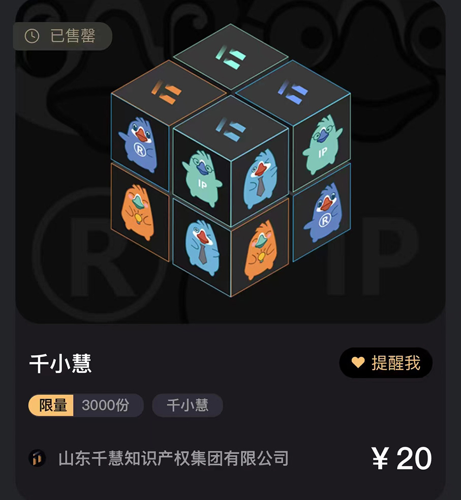 5月10日,第六屆中國品牌日來臨之際,首個(gè)由國內(nèi)知識產(chǎn)權(quán)服務(wù)機(jī)構(gòu)打造的數(shù)字藏品“千小慧”正式推出,上線后30秒內(nèi)被搶購一空。