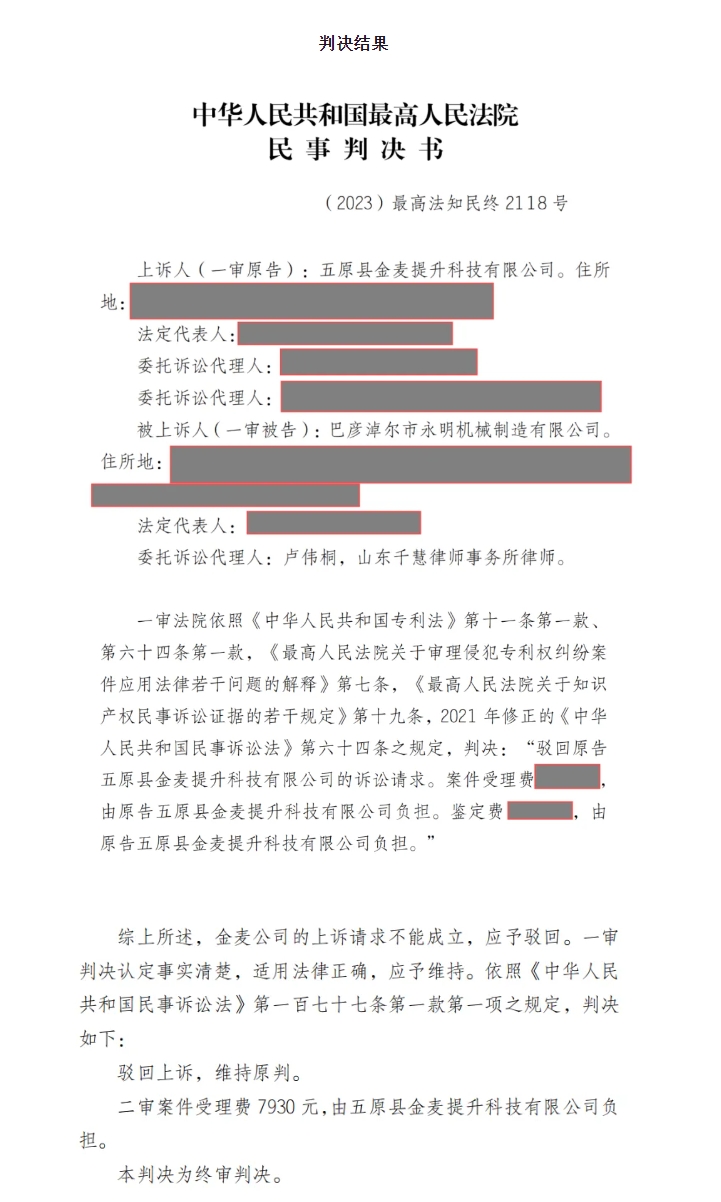 【喜報(bào)】山東千慧律師事務(wù)所喜獲最高人民法院專利侵權(quán)糾紛案件二審勝訴判決