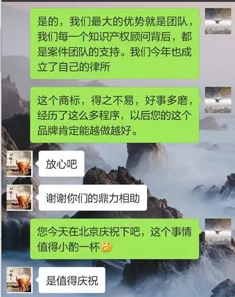 在溝通中,山東啟智飲品有限公司岳總發(fā)來消息,感謝千慧知識產(chǎn)權(quán)為企業(yè)商標保護所做的努力,并將與千慧的合作長久堅持下去。張?zhí)撝魅我矡崆榛貞?,這是千慧知識產(chǎn)權(quán)商標團隊與案件團隊成員共同努力的結(jié)果,千慧知識產(chǎn)權(quán)也將一如既往地為企業(yè)提供全面專業(yè)的服務。