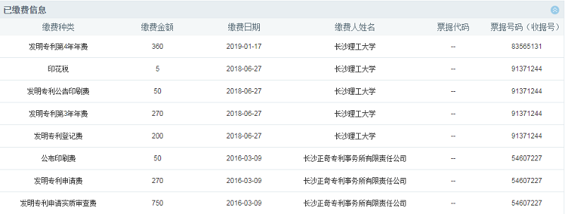 圖3-1 專(zhuān)利號(hào)為2016101273170已繳納費(fèi)用信息截圖
