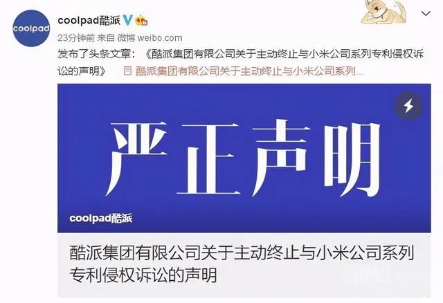 【關(guān)注】酷派發(fā)聲明主動終止與小米的專利侵權(quán)訴訟?理由:民族大義