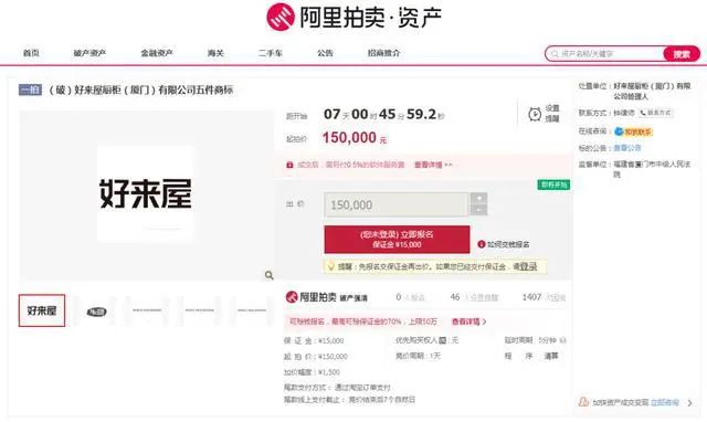 此前記者曾報(bào)道,另一家廈門知名廚柜公司——好來屋廚柜(廈門)有限公司的管理人也將于3月8日10時(shí)至9日10時(shí)在淘寶網(wǎng)阿里拍賣平臺(tái)公開拍賣好來屋廚柜(廈門)有限公司旗下5個(gè)商標(biāo)。5個(gè)商標(biāo)包括“好來屋”“米廚”“WORLD VIEW KITCHEN”等,將整體拍賣,起拍價(jià)15萬元,目前尚無人報(bào)名。