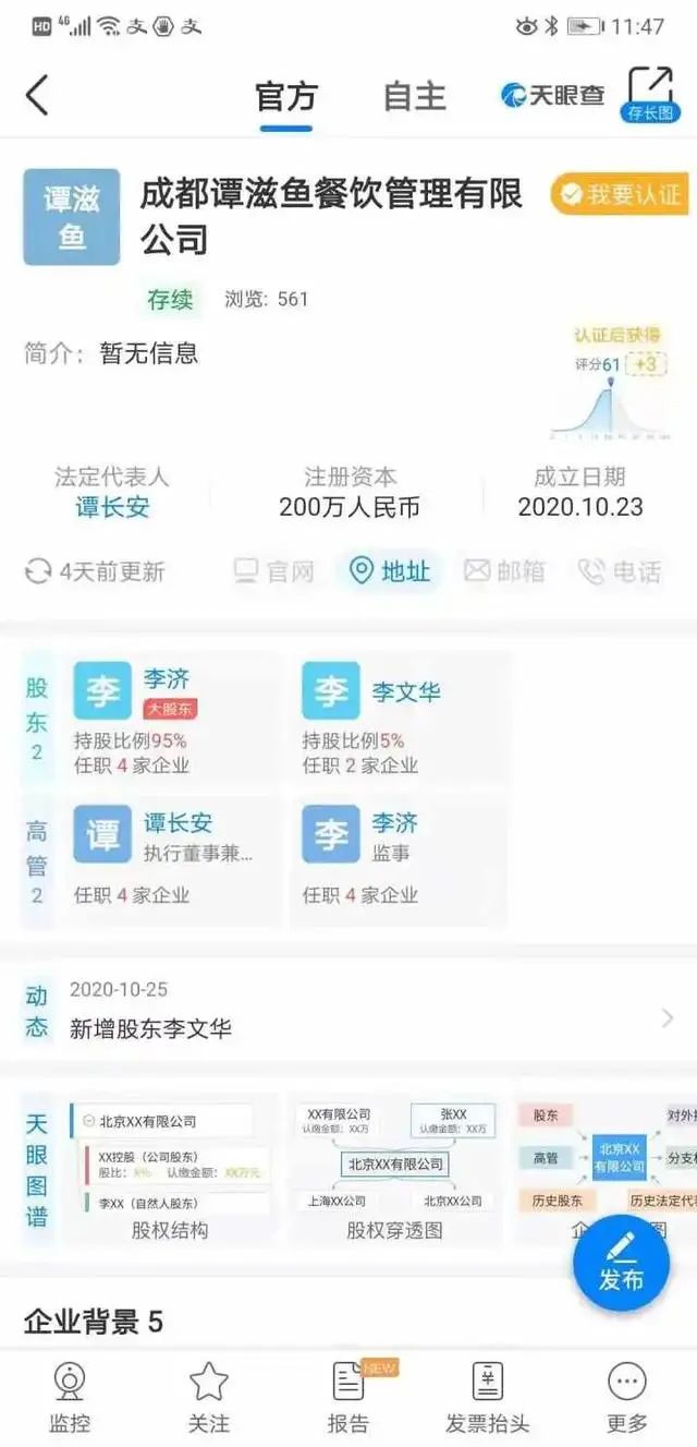 記者搜索天眼查發(fā)現(xiàn),在2020年10月23日,譚長安又注冊了一家成都譚滋魚餐飲管理有限公司,他本人是法定代表人,注冊資本為200萬人民幣?!白T滋魚”成都首店已于1月正式營業(yè),第二家店選址成都花園,五一開始裝修,預(yù)計7月1日開業(yè)。