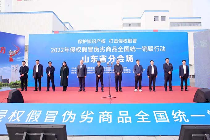 2022年11月10日,按照全國(guó)打擊侵犯知識(shí)產(chǎn)權(quán)和制售假冒偽劣商品工作領(lǐng)導(dǎo)小組辦公室的統(tǒng)一部署和安排,山東省政府知識(shí)產(chǎn)權(quán)戰(zhàn)略實(shí)施工作領(lǐng)導(dǎo)小組辦公室、省市場(chǎng)監(jiān)管局和濰坊市人民政府聯(lián)合組織開(kāi)展山東分會(huì)場(chǎng)銷毀行動(dòng)。