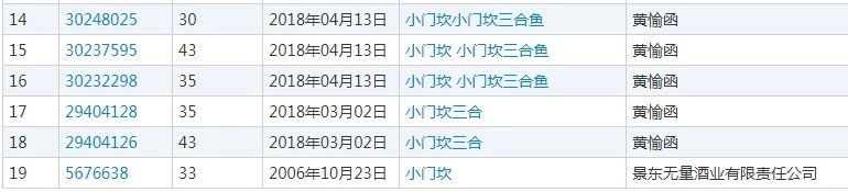 前面已經(jīng)有不同類別的“小門坎”商標(biāo)注冊成功,后又有“三合魚”商標(biāo)被駁回?!靶¢T坎三合魚”、“小門坎三合”能否最終注冊下來,還需要等待商標(biāo)局的審查。