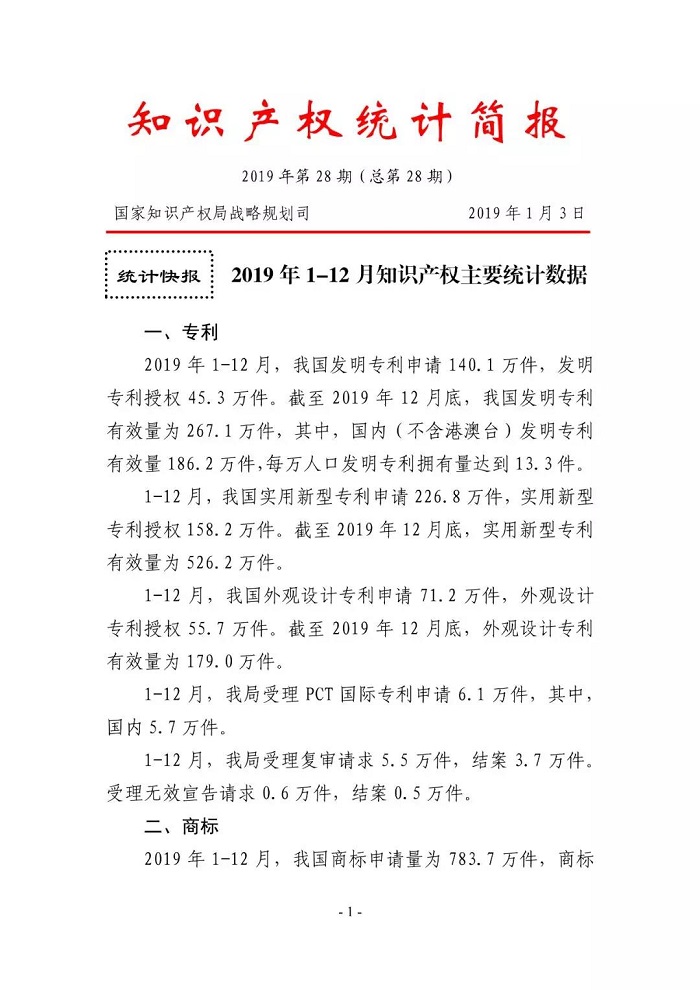 附:2019年第28期知識產(chǎn)權(quán)統(tǒng)計簡報