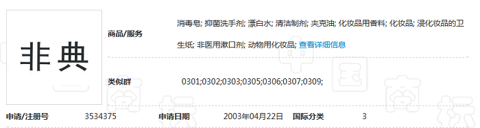另一些“非典”商標類別主要申請在消毒皂、清潔劑、洗面奶等清潔用品上。