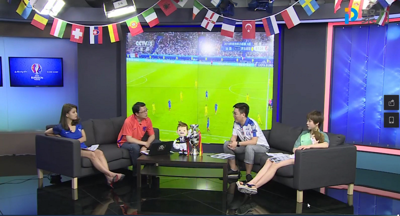 四位嘉賓、一張桌子、一塊背景屏幕,在聚力公司“PPTV聚力”網(wǎng)站上,專為2016年歐洲杯而設(shè)置的演播室就這樣搭建完成了。直播過(guò)程中,背景屏幕會(huì)實(shí)時(shí)轉(zhuǎn)播來(lái)自中央電視臺(tái)體育頻道的比賽現(xiàn)場(chǎng)畫(huà)面,節(jié)目開(kāi)始前、半場(chǎng)休息時(shí)間及比賽結(jié)束后,則顯示技術(shù)統(tǒng)計(jì)信息及商業(yè)廣告等其他內(nèi)容。