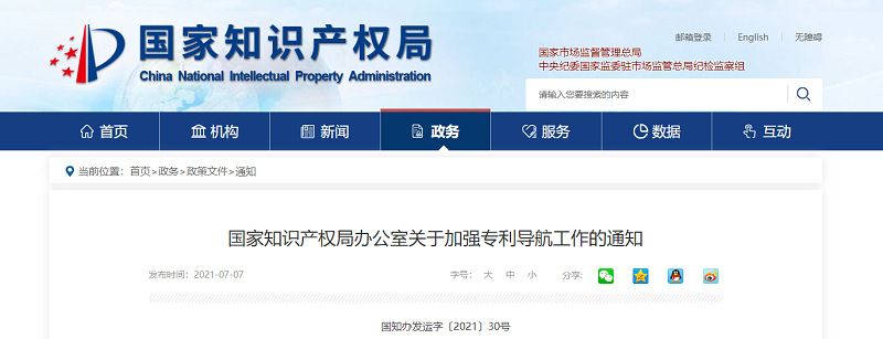 國(guó)家知識(shí)產(chǎn)權(quán)局辦公室關(guān)于加強(qiáng)專利導(dǎo)航工作的通知