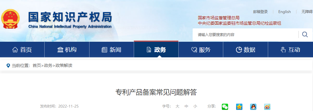 答:產(chǎn)品備案審核通過后,備案主體將收到產(chǎn)品已完成備案的短信通知,在平臺“產(chǎn)品備案管理”和“產(chǎn)品信息查詢”頁面的“已備案”列表中,可以查詢和瀏覽已備案的專利產(chǎn)品,并自行下載《備案證明》。