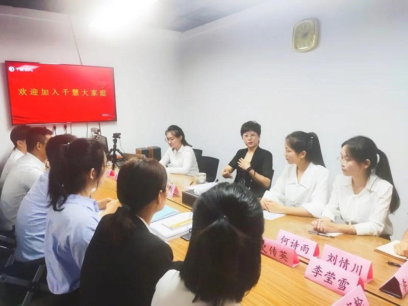 火熱八月,千慧又迎來了一批新生力量,為幫助新入職員工盡快轉換角色,融入千慧大家庭,近期,人力資源部組織新進員工座談會,李俠董事長參加座談并與新員工親切交流。